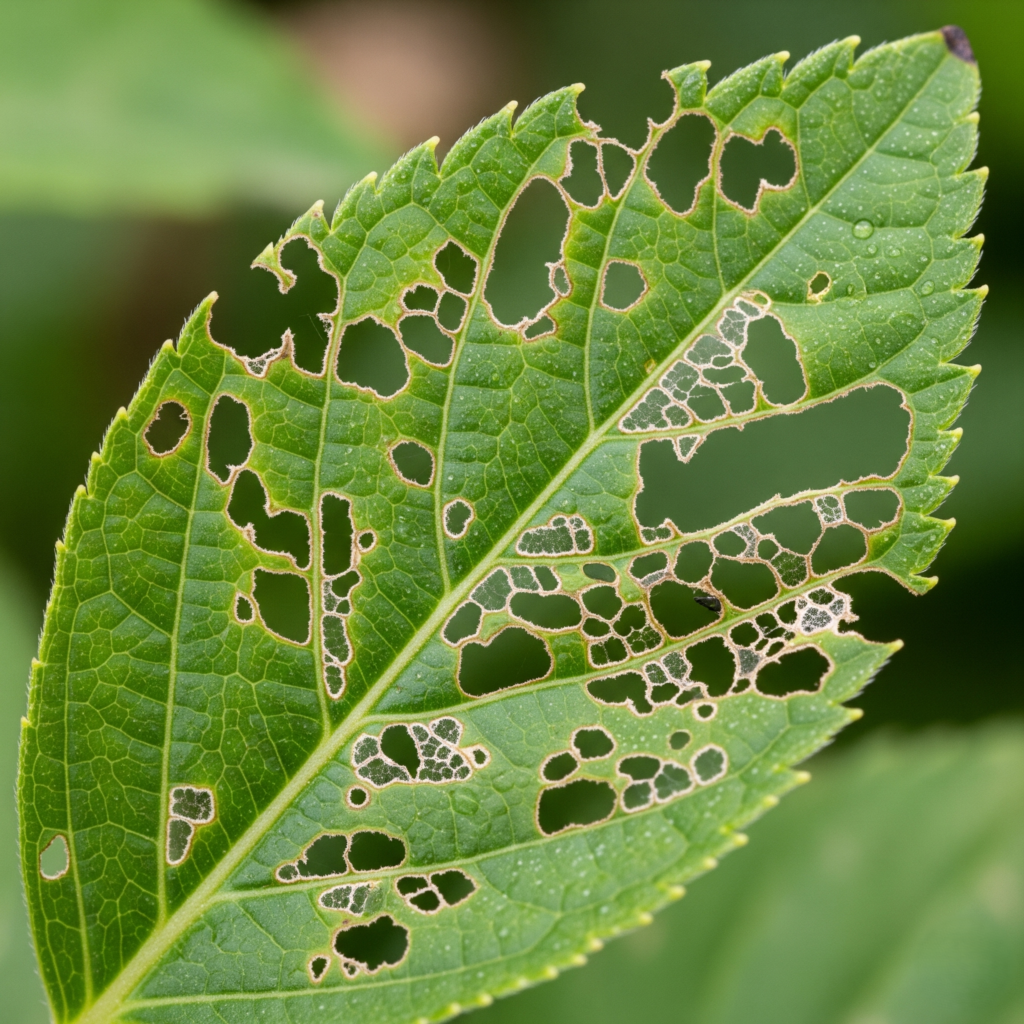 • Earwigs chew irregular holes in leaves, flowers, and seedlings. They are especially damaging to young plants.